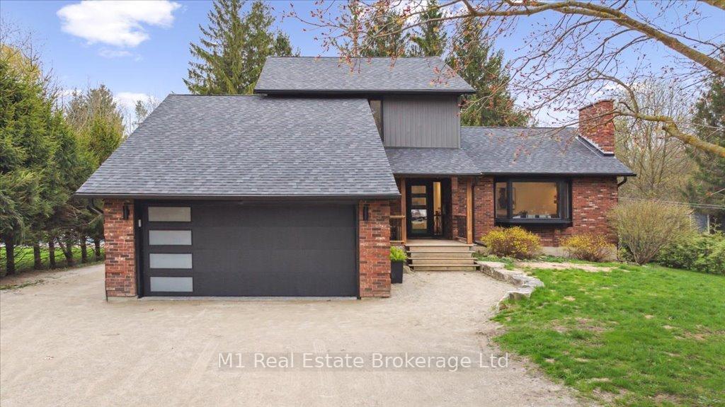 Experience unmatched craftsmanship with premium upgrades at this stunning rural property just minutes from Fergus. Set on a serene and private lot, this home has been thoughtfully transformed inside and out since 2016, combining modern convenience with timeless character. Step inside to discover a beautifully updated main floor (2021) featuring a custom kitchen renovation, refinished solid wood doors, upgraded trim, and a stylish living room complete with a built-in fireplace, floating shelves, and new plumbing and electrical. Triple-pane windows throughout (2020) provide comfort and energy efficiency year-round. The sunroom (2022) is a true showstopper, boasting a built-in hot tub and a full glass garage door, perfect for entertaining or relaxing in any season. Upstairs, the refinished red oak flooring (2025), custom Acorn staircase and railing, and a fully renovated main bathroom (2024) elevate everyday living. Enjoy radiant in-floor heating and a new boiler system (2024) valued at over $50K, ensuring luxurious warmth throughout. The upper ensuite was updated in 2019, and the basement apartment (2016) features full soundproofing and a private interlock entrance (2020)ideal for multi-generational living or rental income. Outdoors, you’ll find a beautifully renovated barn (2020), backyard patio with fire pit, and a unique steel I-beam bridge with lighting (2017) strong enough to support a vehicle. Additional upgrades include a new roof (2019), furnace and water heater (2018), new siding and black fascia/soffits (2023), and an extended driveway with arbour stones.This is more than a home its a rare opportunity to own a turn-key country property where no detail has been overlooked.